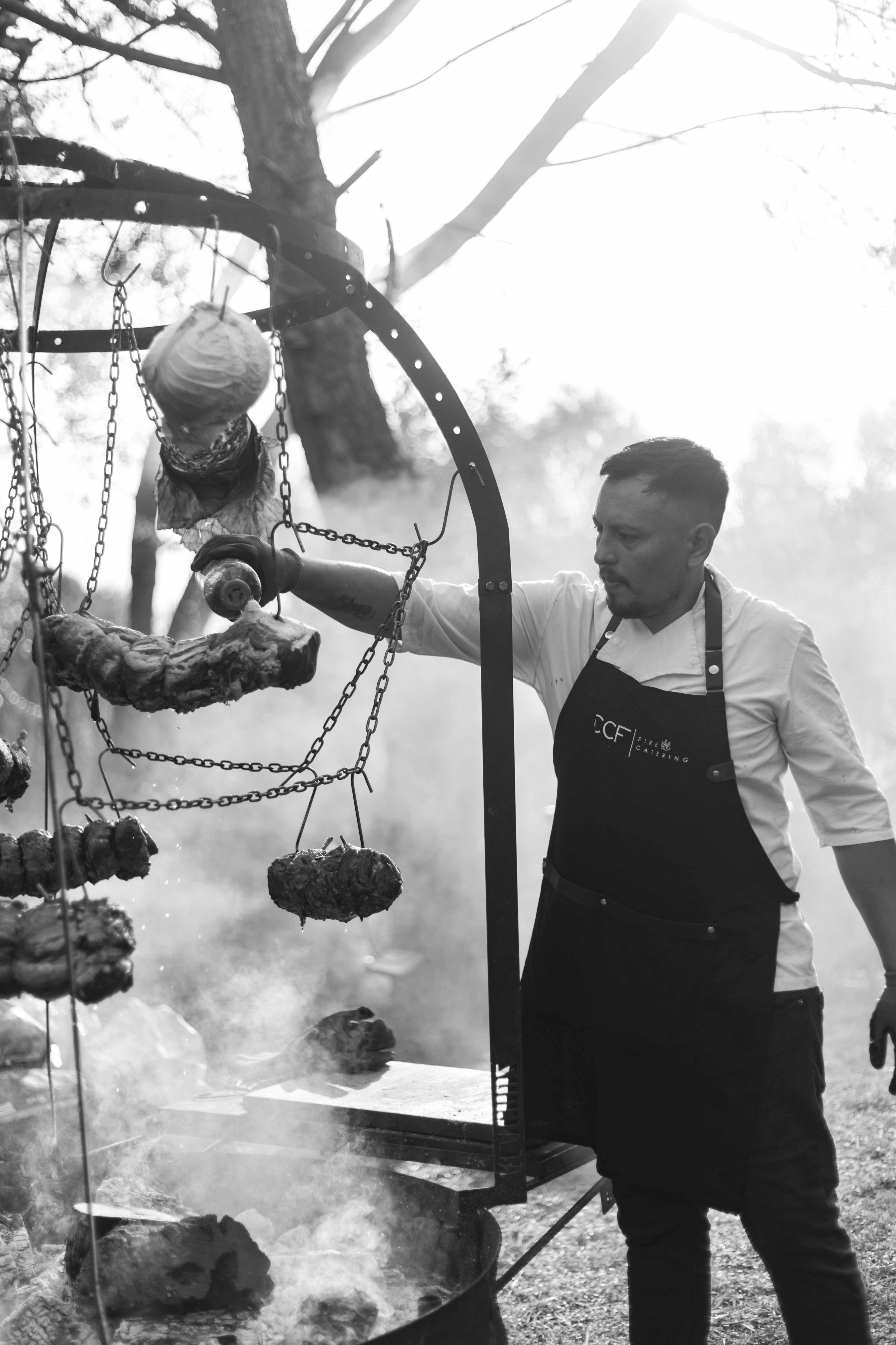 CCF Catering es el catering exclusivo de Polo Park. Cocina en vivo, show de fuegos, ingredientes de estación y una propuesta gastronómica que es parte central de la experiencia — no solo un servicio de fondo.